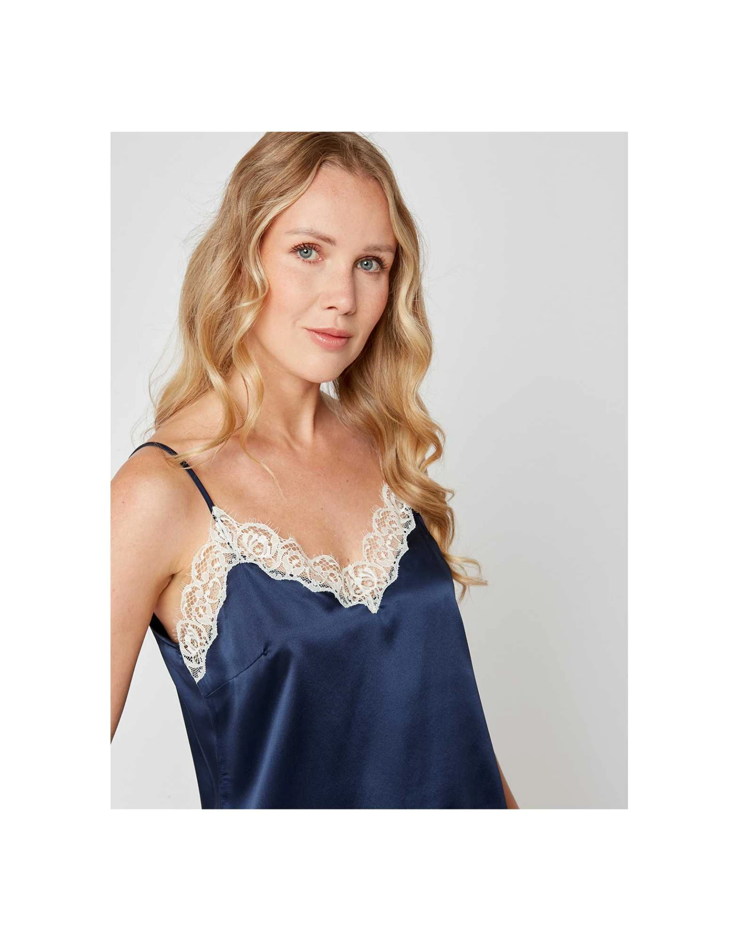 Coloris marine et dentelle sur le décolleté et en bas du modèle coloris naturel.