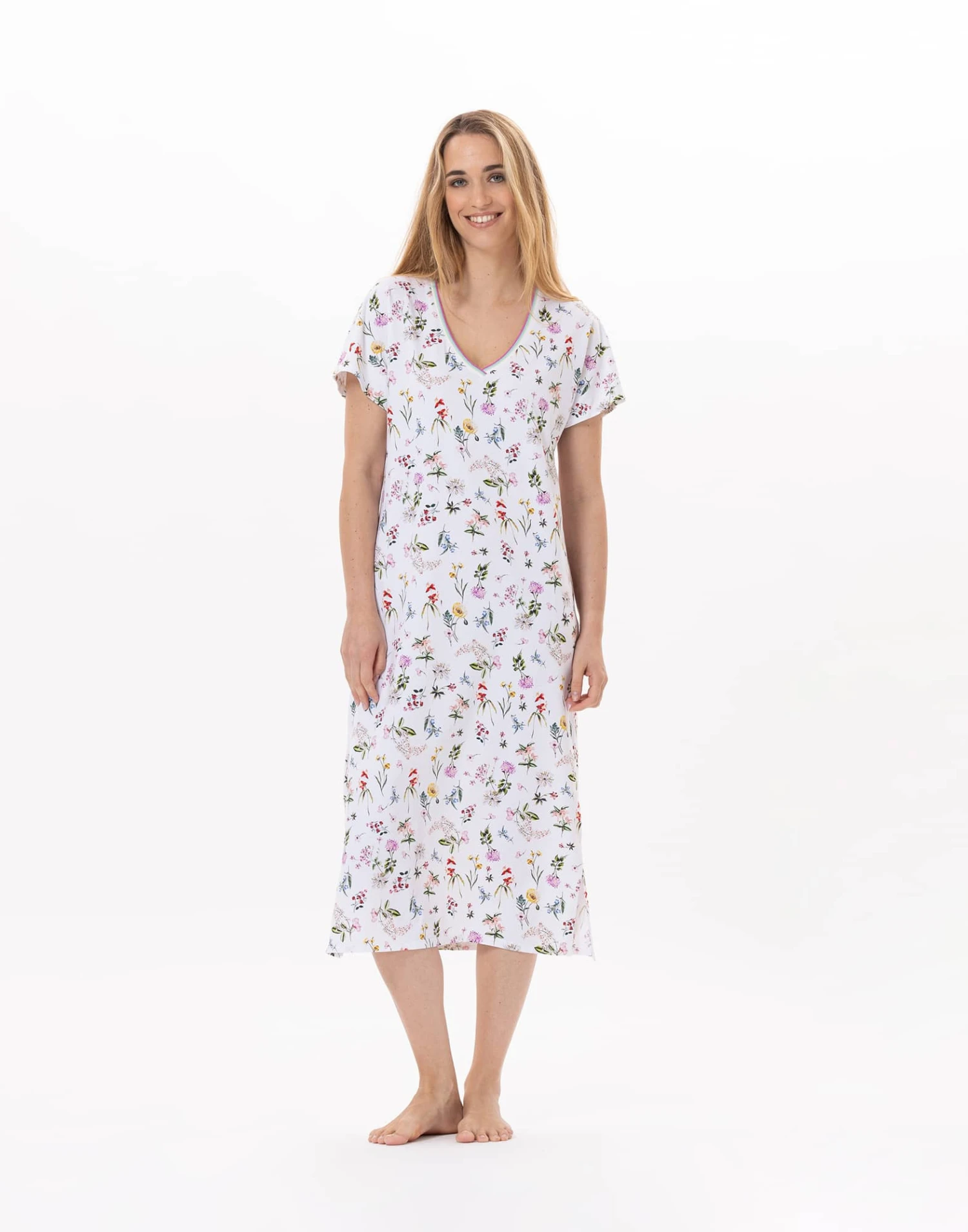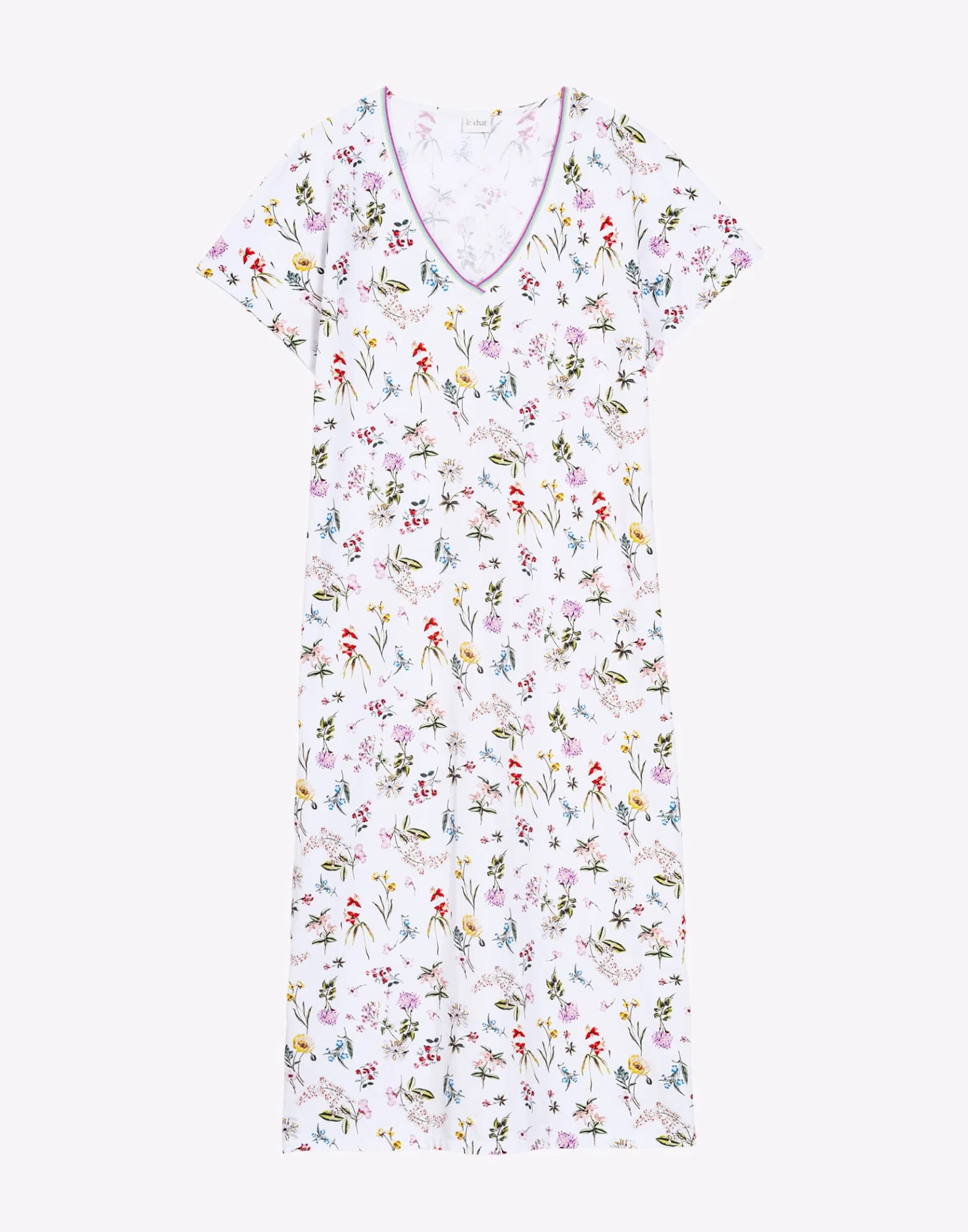 L’imprimé fleuri exclusif et le mini bord côte rayé à l’encolure signent notre chemise de nuit longue BLOOM 911.