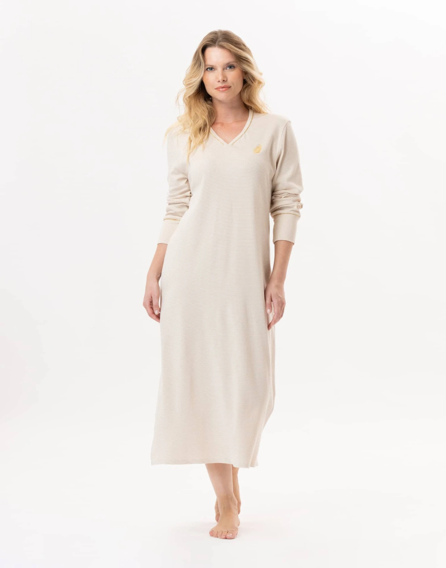 Chemise De Nuit Longue En CotonGARANCE 811 Doré/Ecru