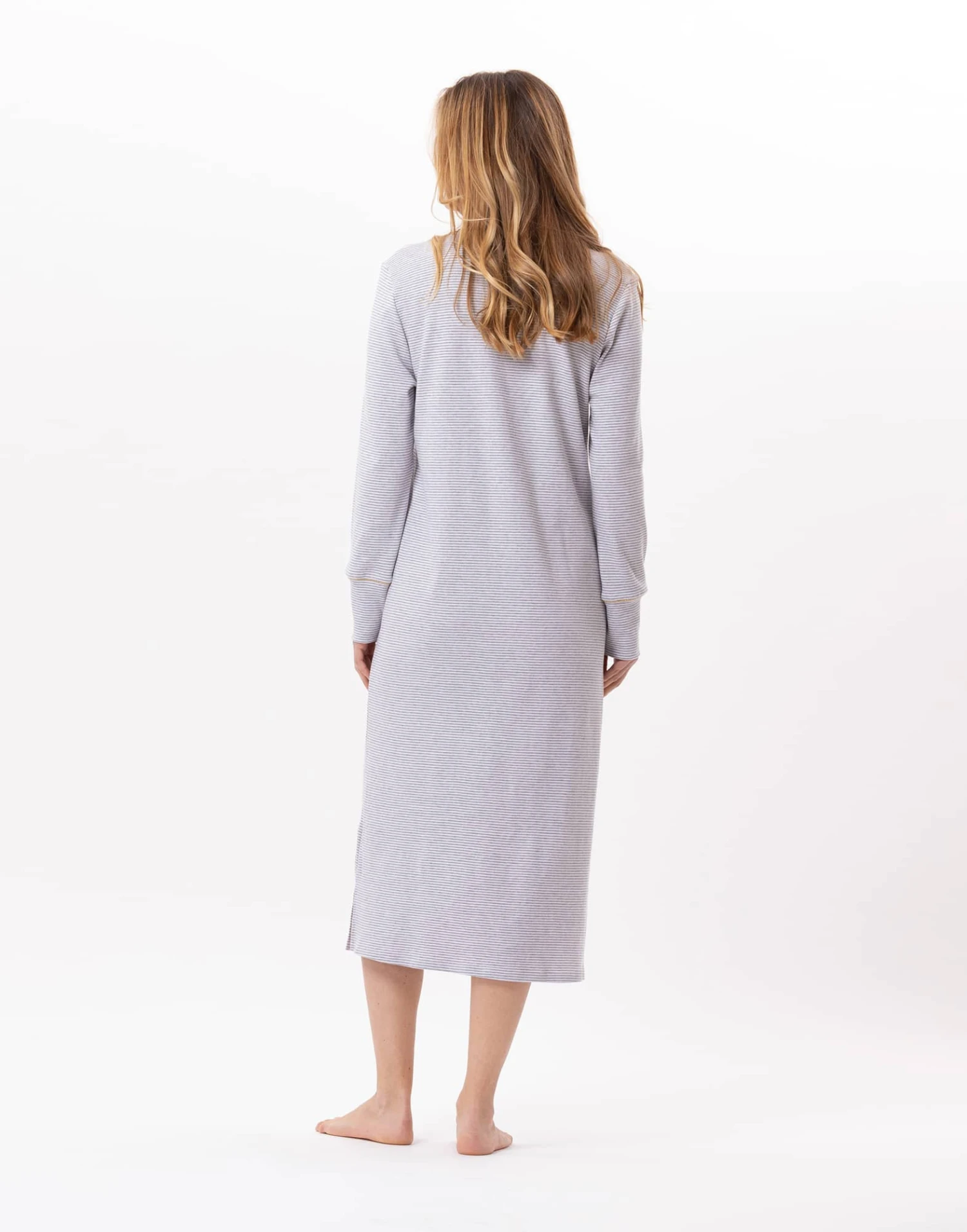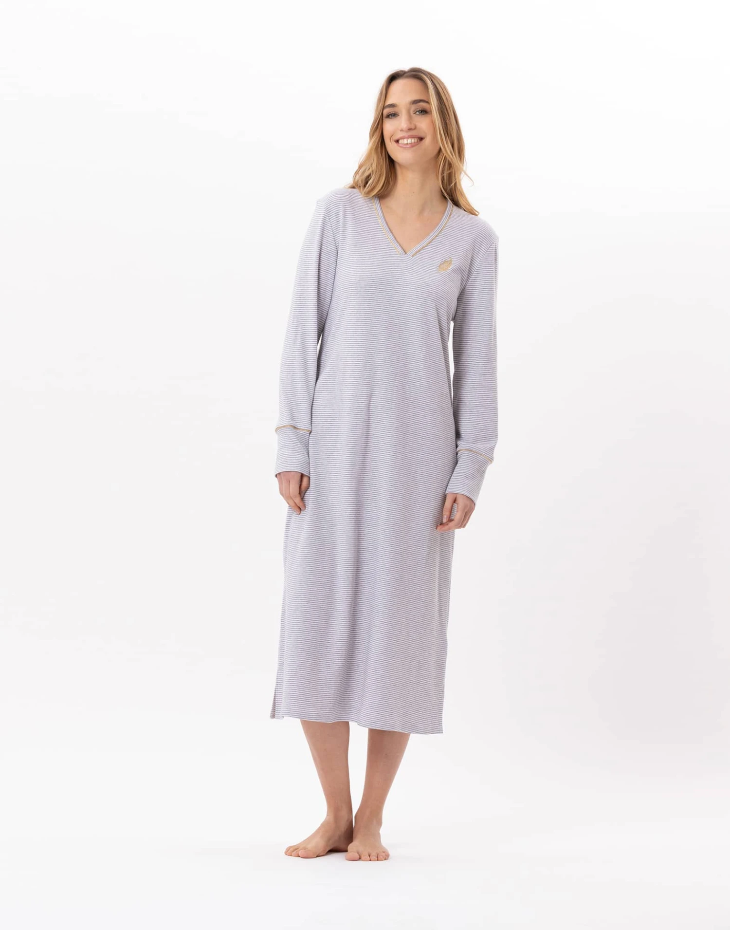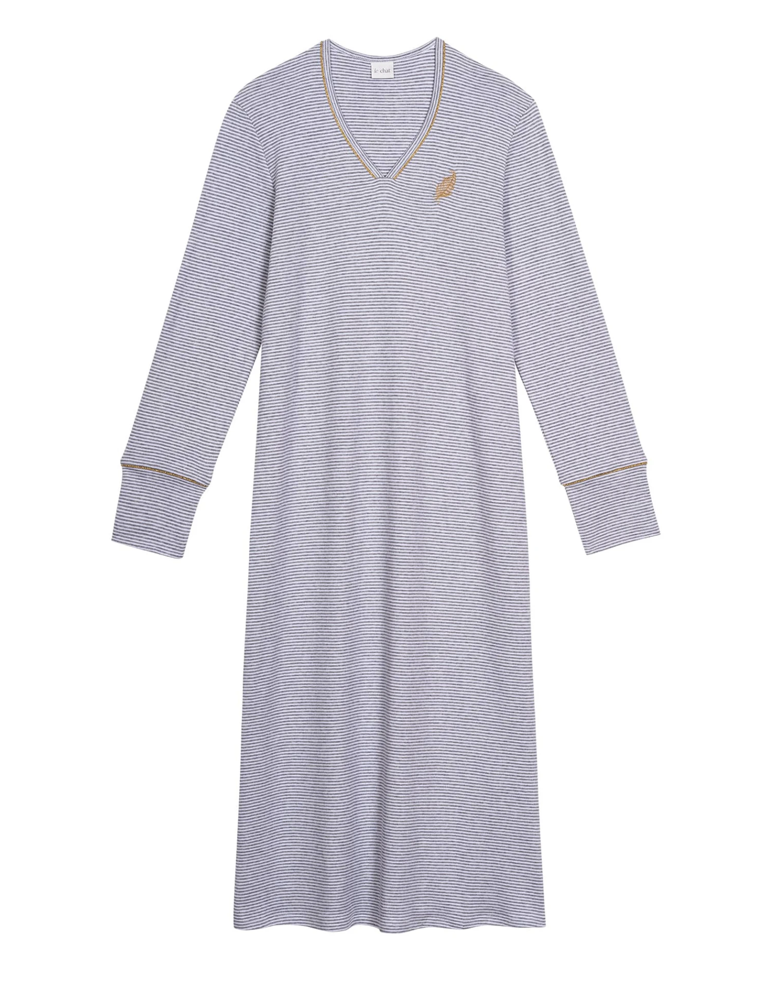 Chemise De Nuit Longue En CotonGARANCE 811 Gris Chine/Blanc