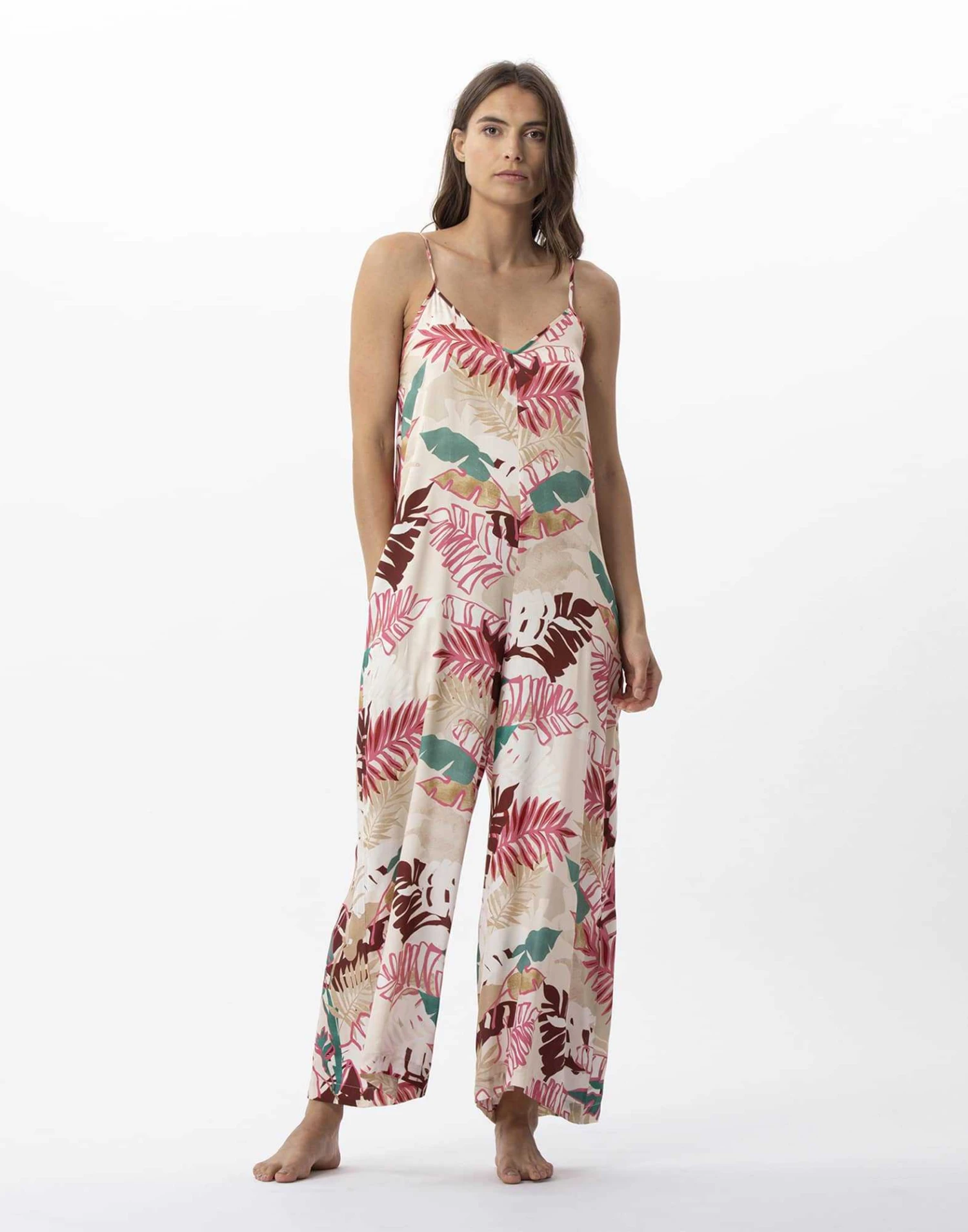 Notre combi pantalon est une de nos nouvelles formes de cet été. Elle s’enfile très facilement et est volontairement à porter très fluide. Vêtement estival par excellence, elle se porte chez soi, jusqu’au bord de la piscine ou la plage. Pour le même porté que sur Clarisse, nous recommandons de ne pas prendre une taille en dessous mais bien votre taille habituelle. Elle est votre indispensable dès la mi-saison, accessoirisée d’une veste en jean pour les journées plus fraiches et se portera seule en plein été.