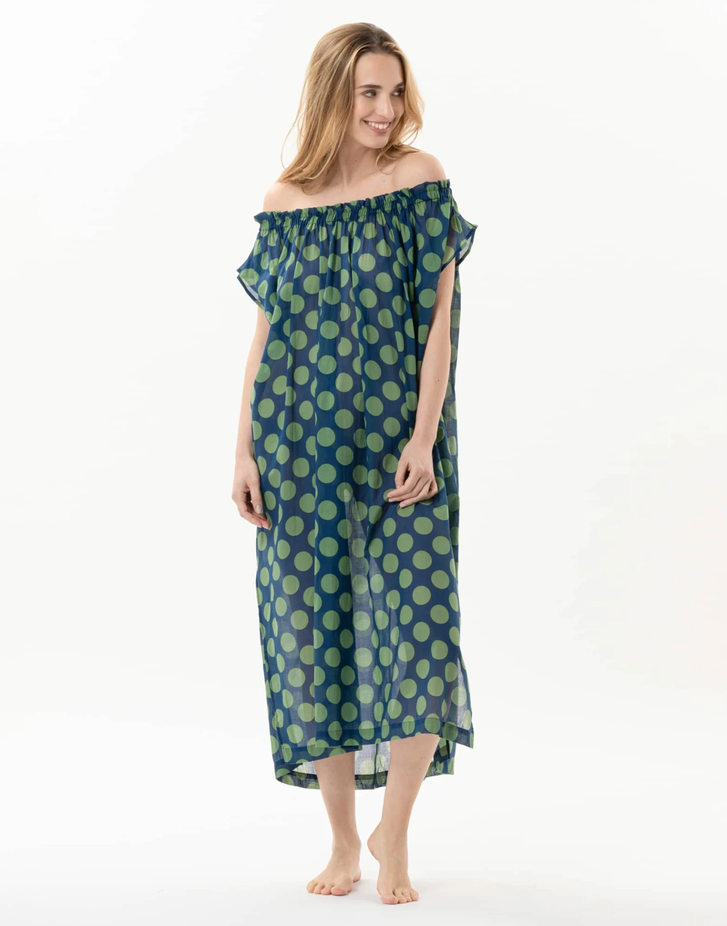 Kaftan Imprimé Pois En 100% Coton RIVA 741 Vert