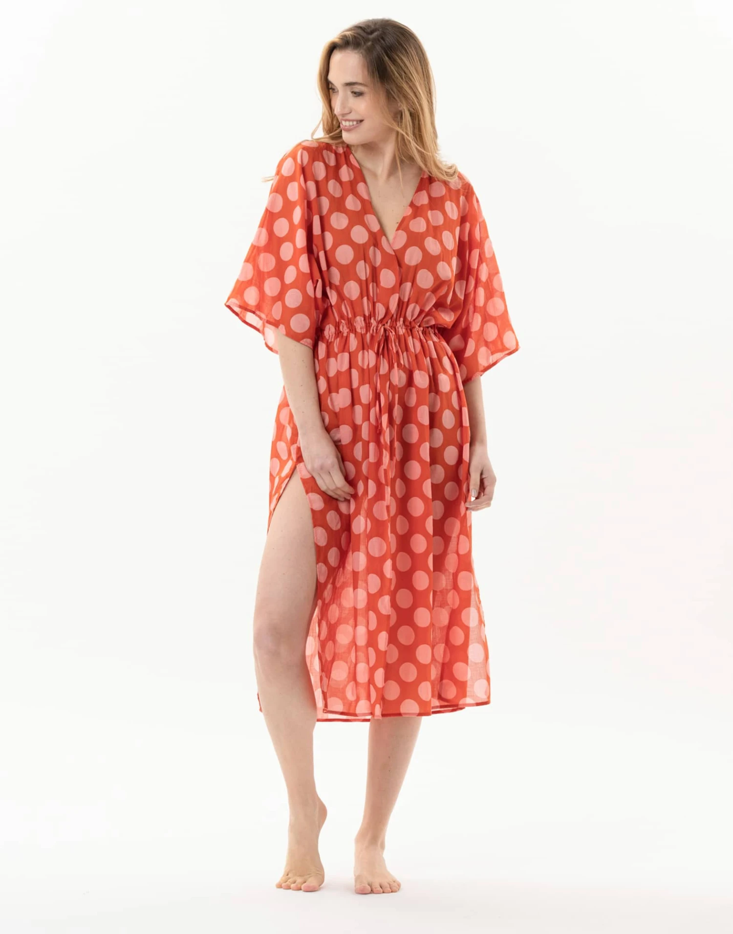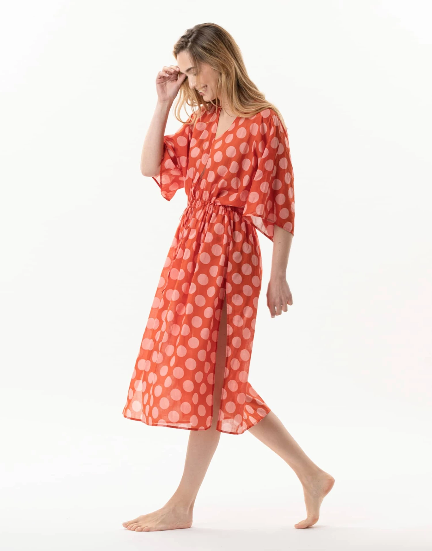 Coupe ample, manches kimono et fentes côtés apportent fluidité pour un maximum de mouvements cet été.