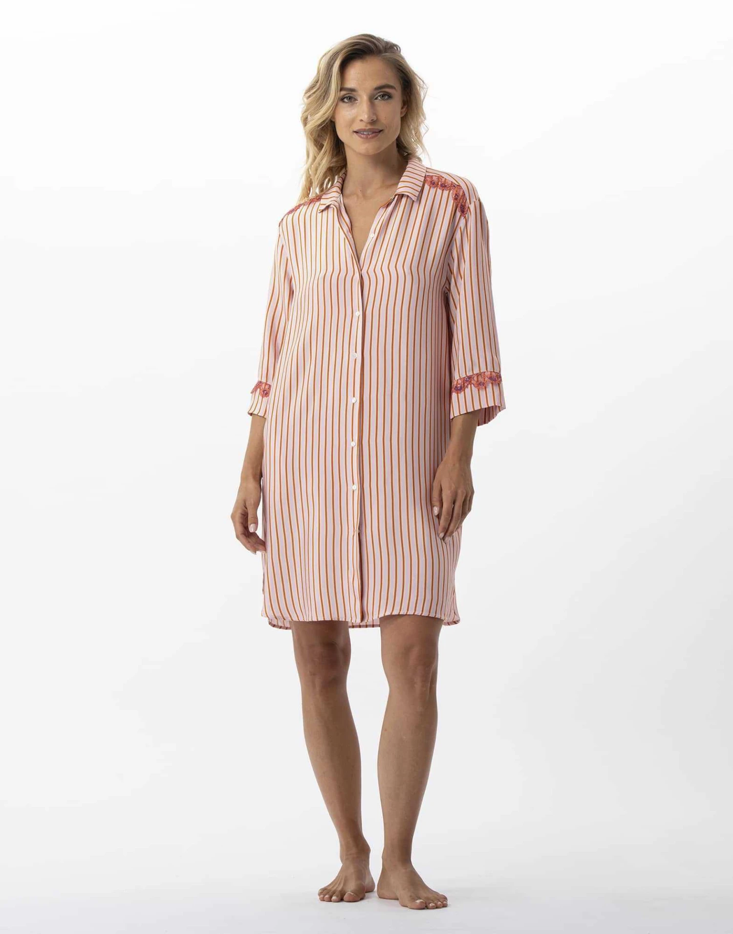 La dentelle assortie aux rayures et 100% Made in France sublime la nuisette 703, la liquette 705, le pyjama 706, le caraco 730 et le kimono 760.