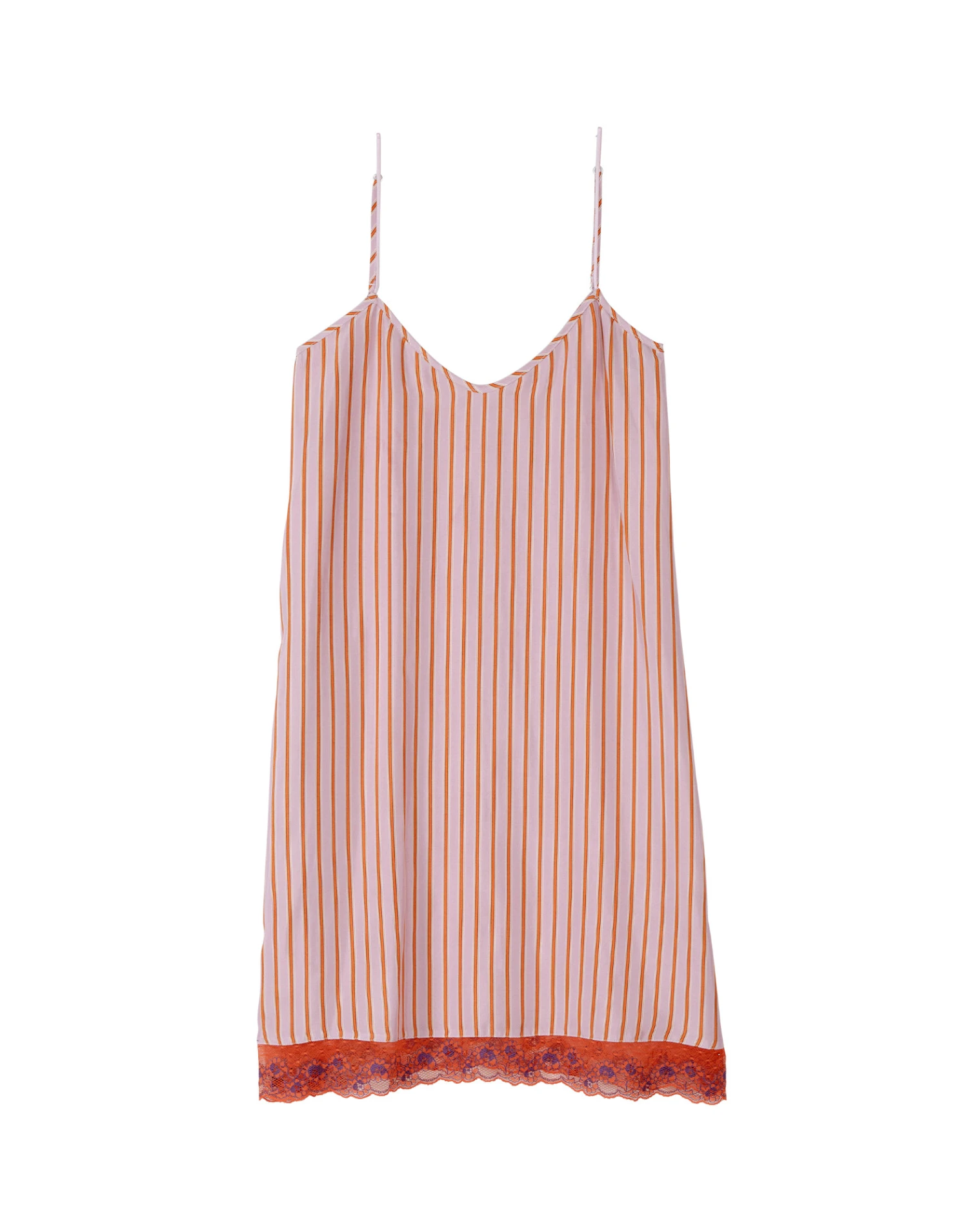 La dentelle assortie aux rayures et 100% Made in France sublime la nuisette 703, la liquette 705, le pyjama 706, le caraco 730 et le kimono 760.
