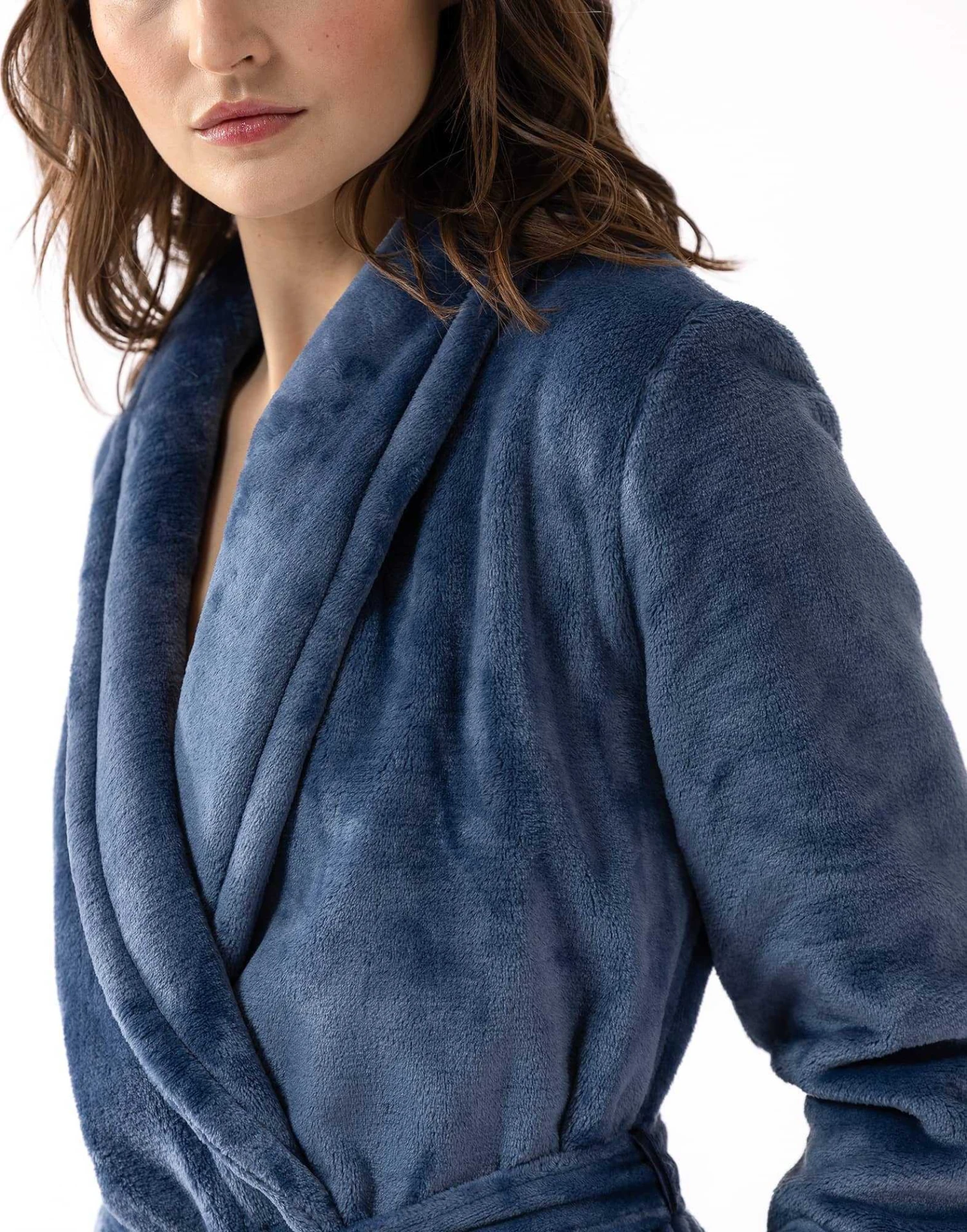 ESSENTIEL H61B prusse est un peignoir HOMEWEAR, à porter dès le saut du lit ou le soir au coin de la cheminée.