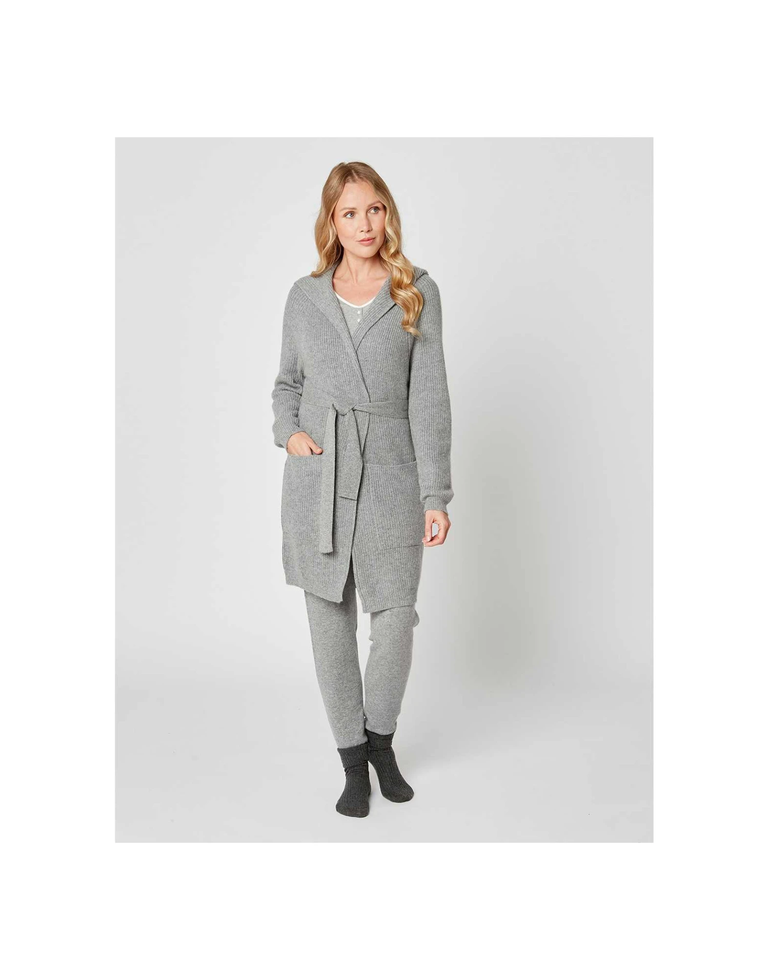 Peignoir En Cachemire Col Châle à Capuche Souple Gris Chiné