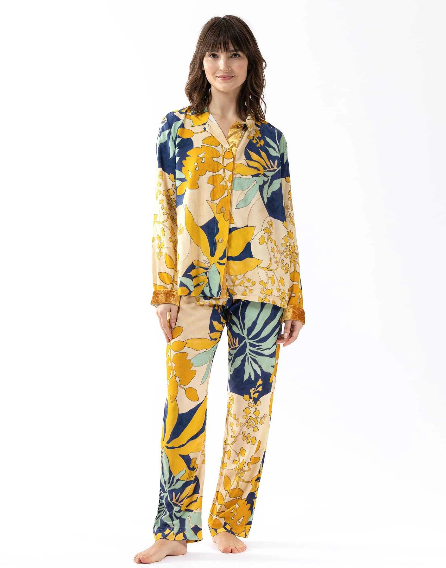 Effet masculin / féminin, le pyjama boutonné FOUGÈRES 606 multico est un incontournable de nos collections, à porter en homewear et nightwear.