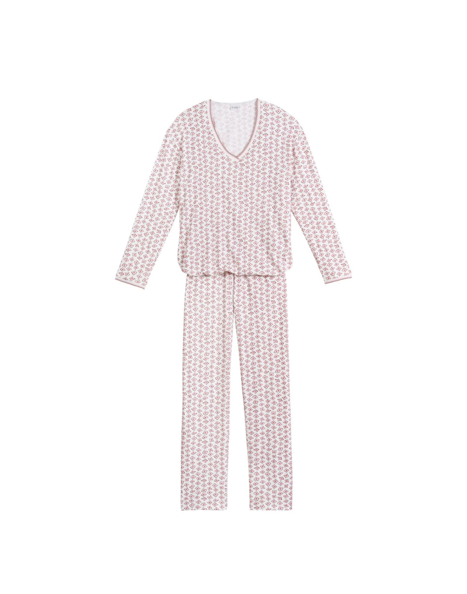 L’imprimé exclusif frais en all-over de petits carrés est décliné dans notre nouveau blush, qui incarne la douceur et la féminité au charme discret.