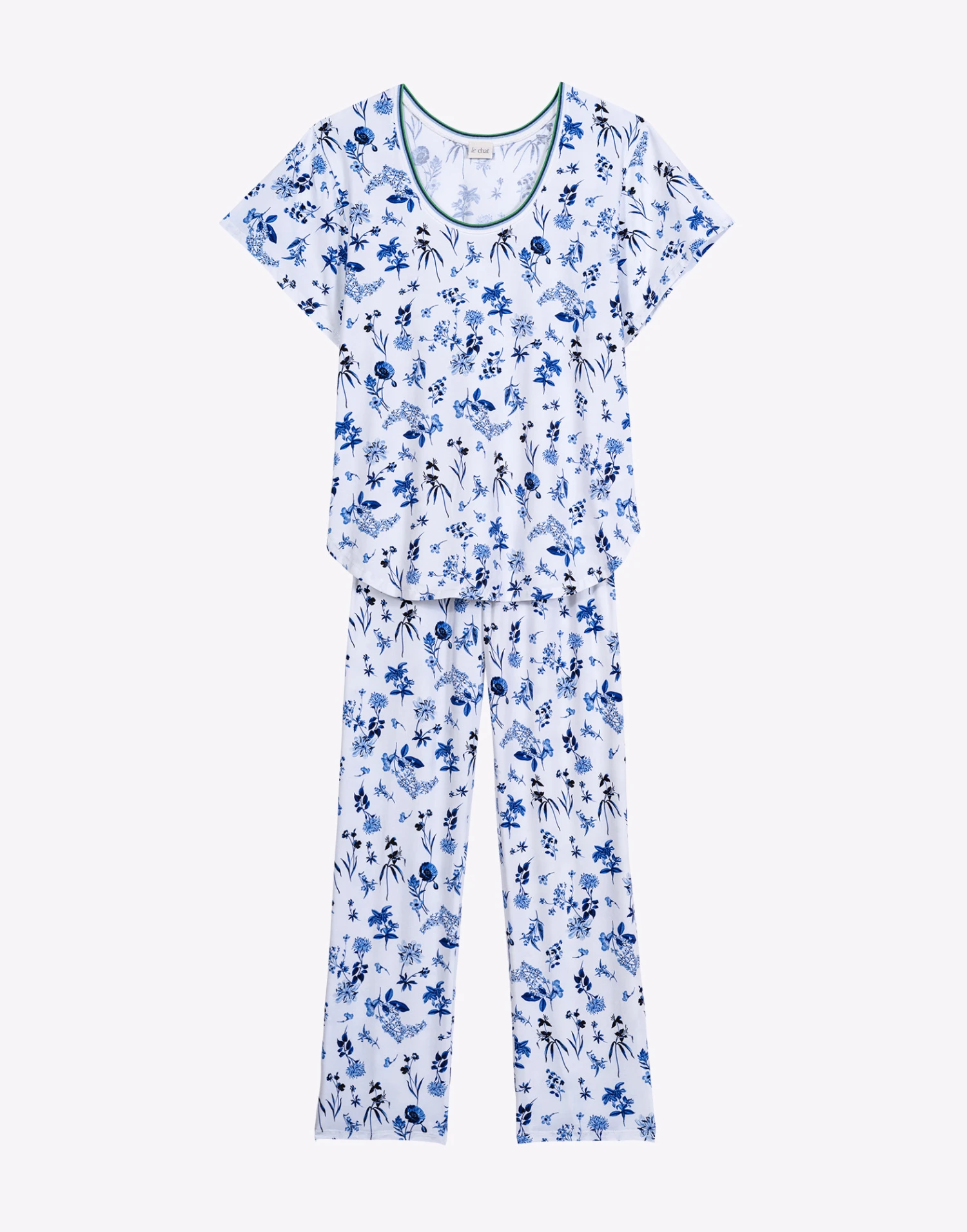 L’imprimé fleuri exclusif et le mini bord côte rayé à l’encolure signent notre pyjama BLOOM 902.
