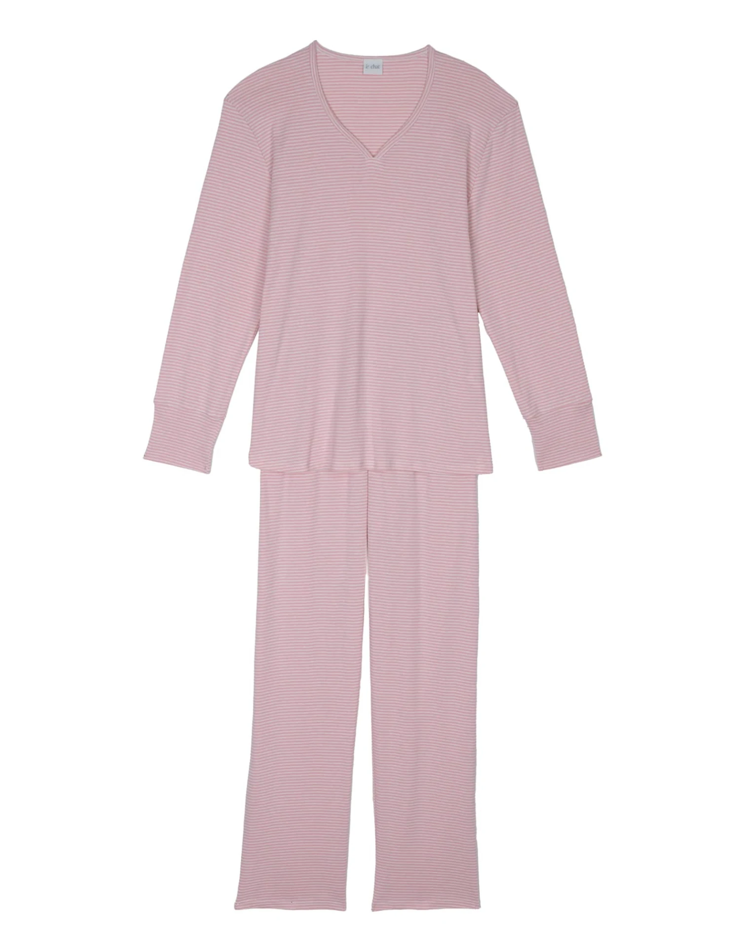 Pour les plus frileuses, associez le pyjama GARANCE 802 à une robe de chambre, un peignoir ou une veste Essentiel : vous aurez chaud tout en étant élégante au saut du lit.