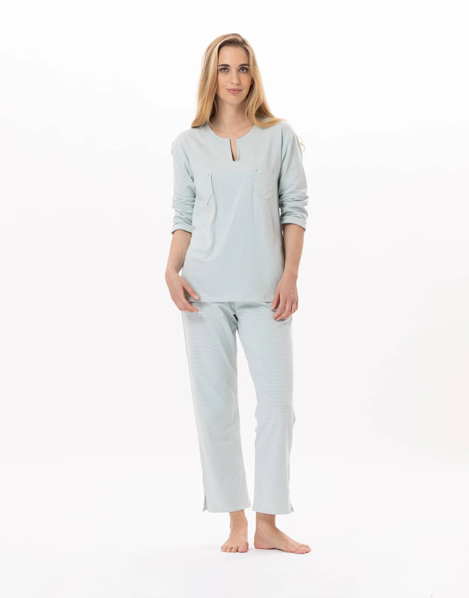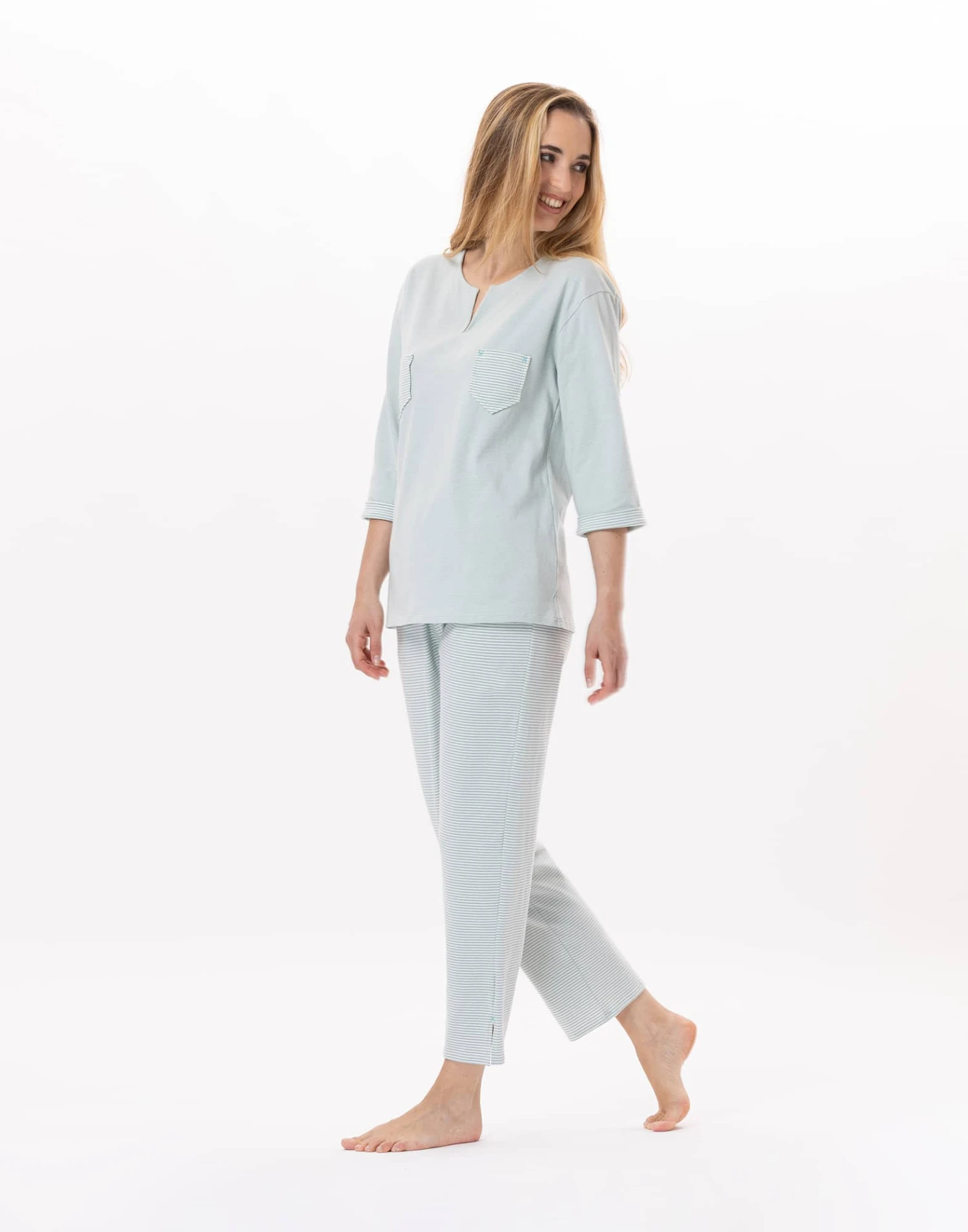 Tout rayé dans une maille douce et légère, l’incontournable pyjama en coton JEANNETTE 902 est parfait pour passer de douces nuits dès l’entrée de saison.