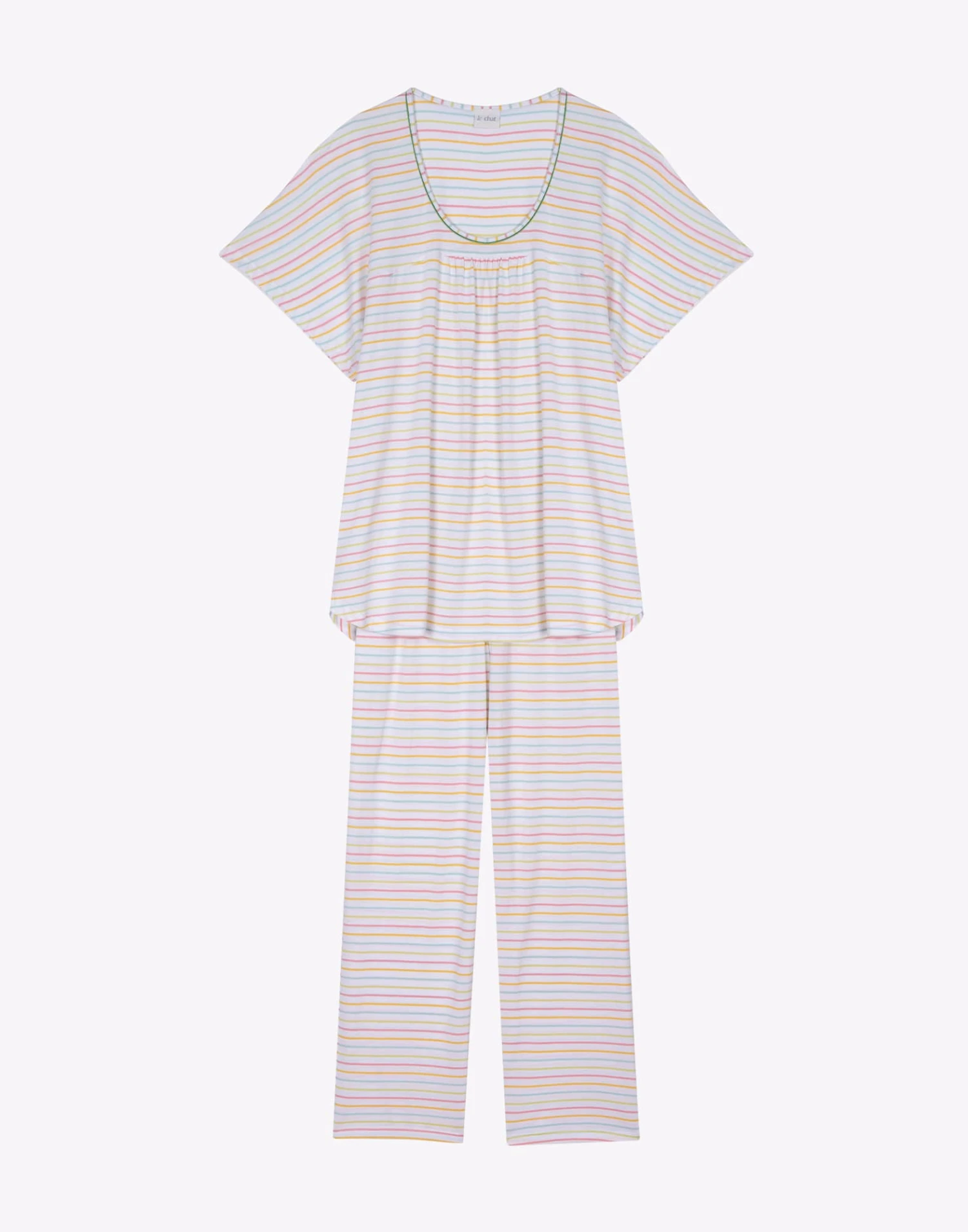 Son imprimé à fines rayures multicolores acidulées nous rappelle la lumière du Sud et l’énergie de la Provence.