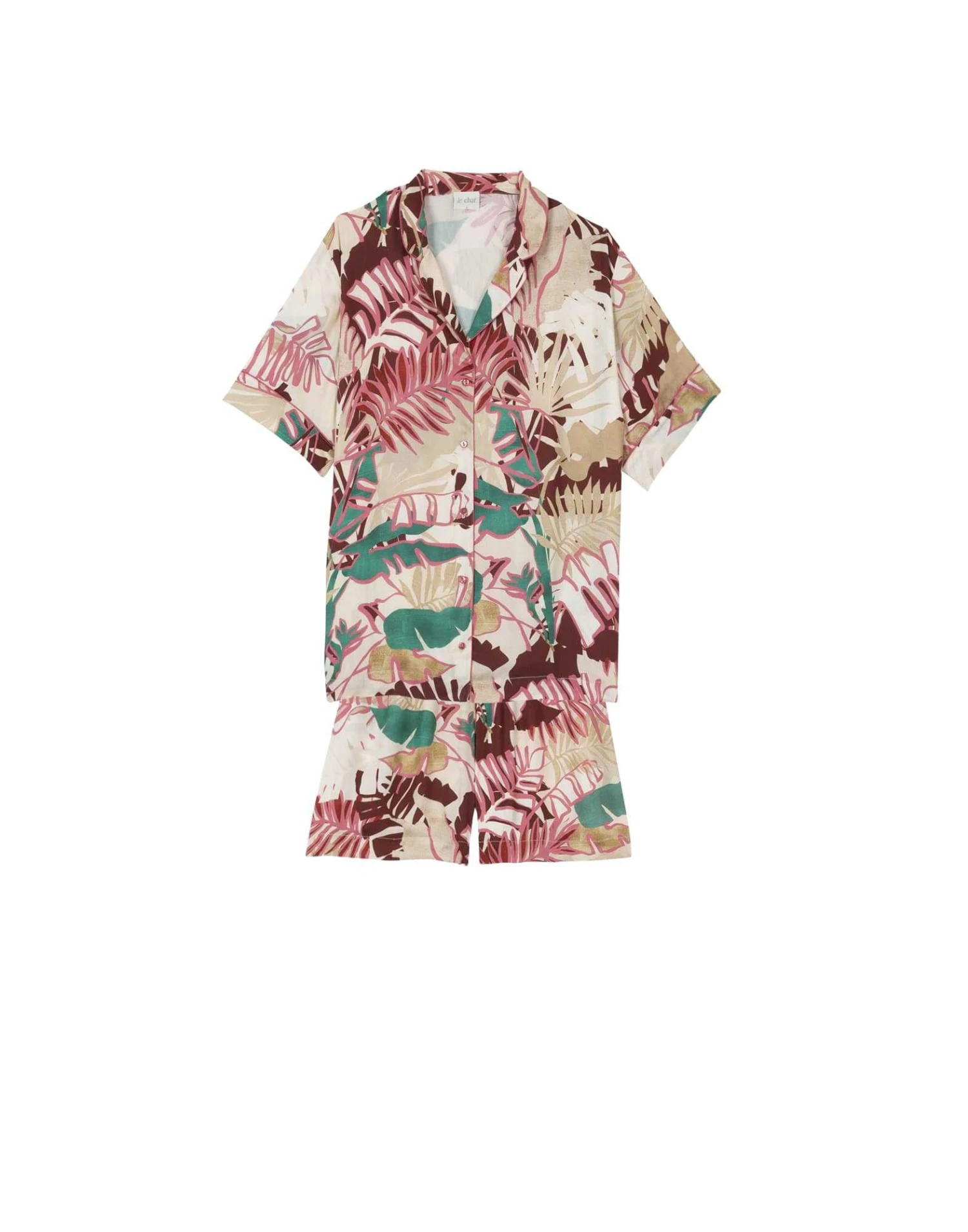 Son imprimé géant palmeraie, décliné dans la palette de couleurs du camélia, nous donne des envies d’évasion et nous invite à nous reconnecter dès maintenant avec la nature.