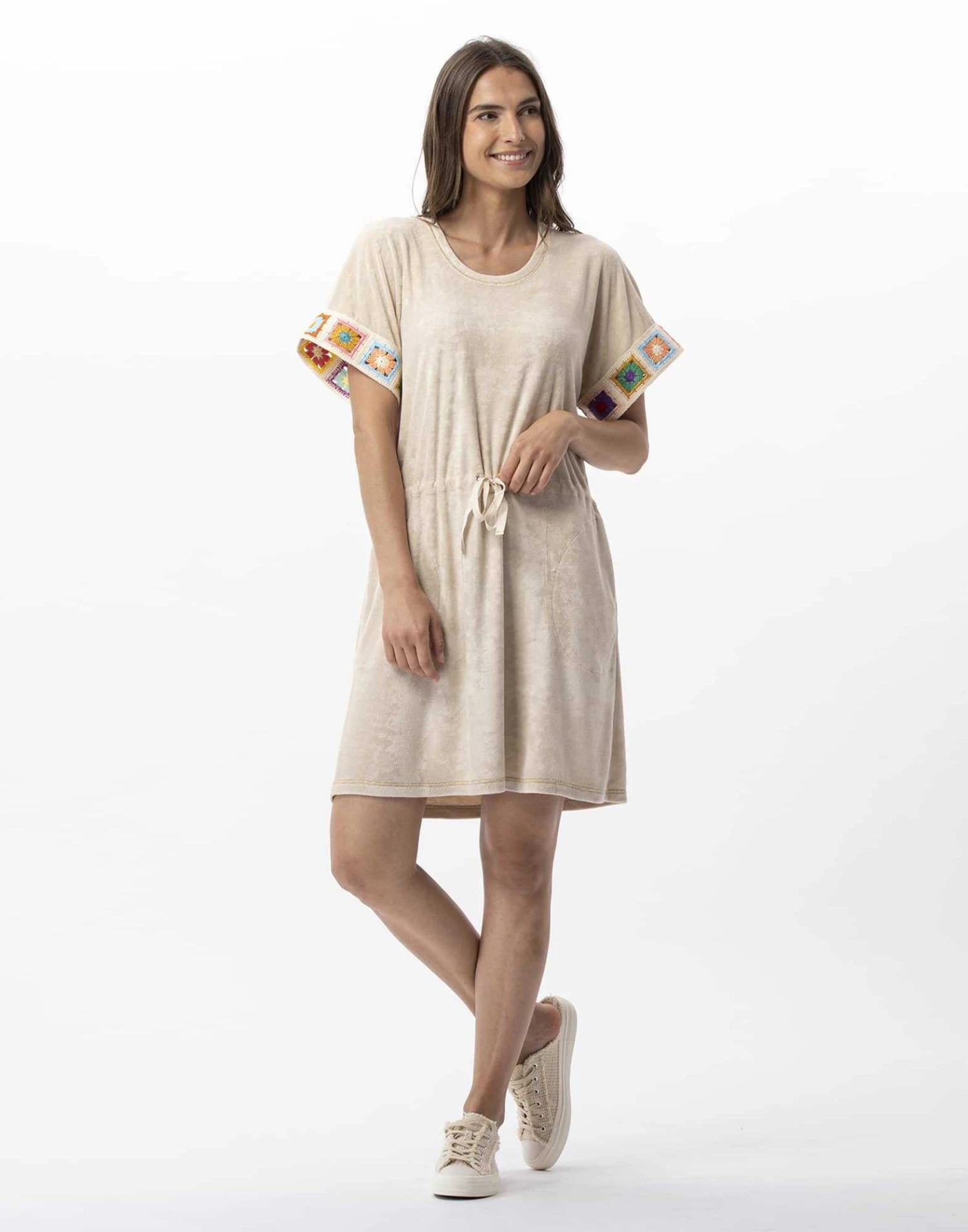 Elle nous suit tout l’été ! Facile à porter grâce à sa forme décontractée, la robe 740 est empreinte de style grâce à sa matière très actuelle en bouclette éponge. Parfait pour aller à la plage mais pas que ! Se veut porter fluide, vous pouvez coulisser et nouer de façon souple ou plus marquée son lien à la taille. Existe en deux douces couleurs : ciel et coquille.