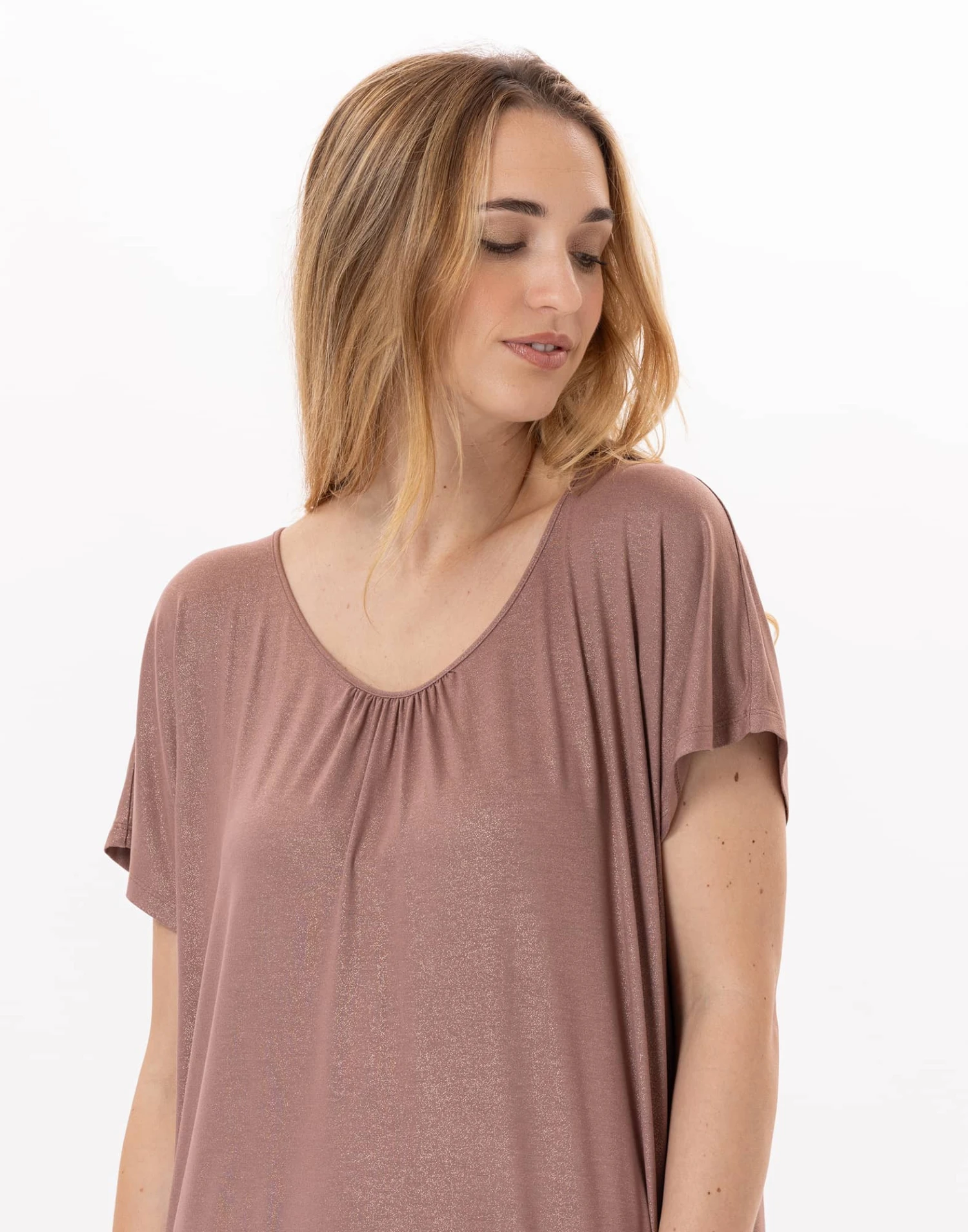 Son jersey viscose-élasthanne, sublimé de paillettes, allie douceur et facilité d’entretien. Décliné en vert d’eau rafraîchissant ou en sable apaisant, RAMATUELLE capte l’éclat de la mer et du soleil pour un été qui s’annonce brillant.