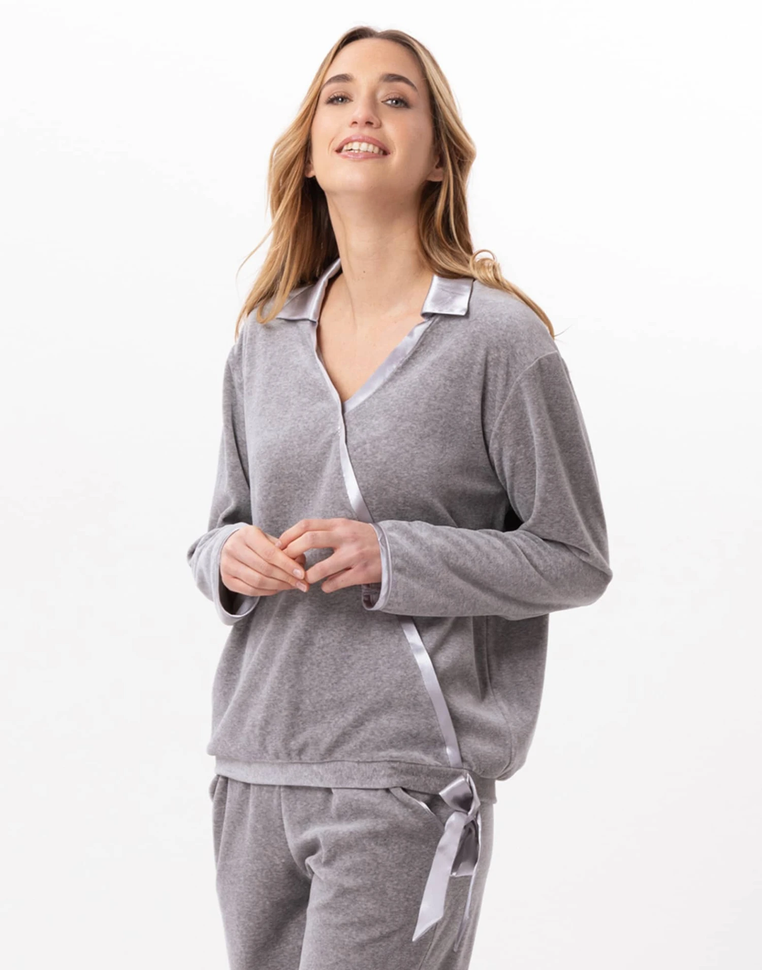 Associez-le au pantalon VELVET 880 pour créer une tenue homewear douillette, dans l’esprit d’un ensemble jogging féminin.
