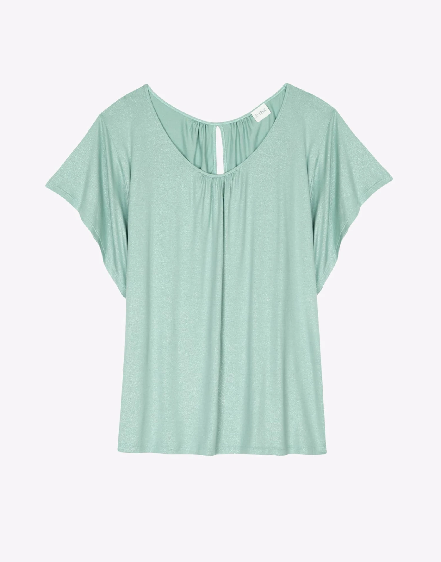 – Jeu de délicates fronces à l’encolure ronde et au dos