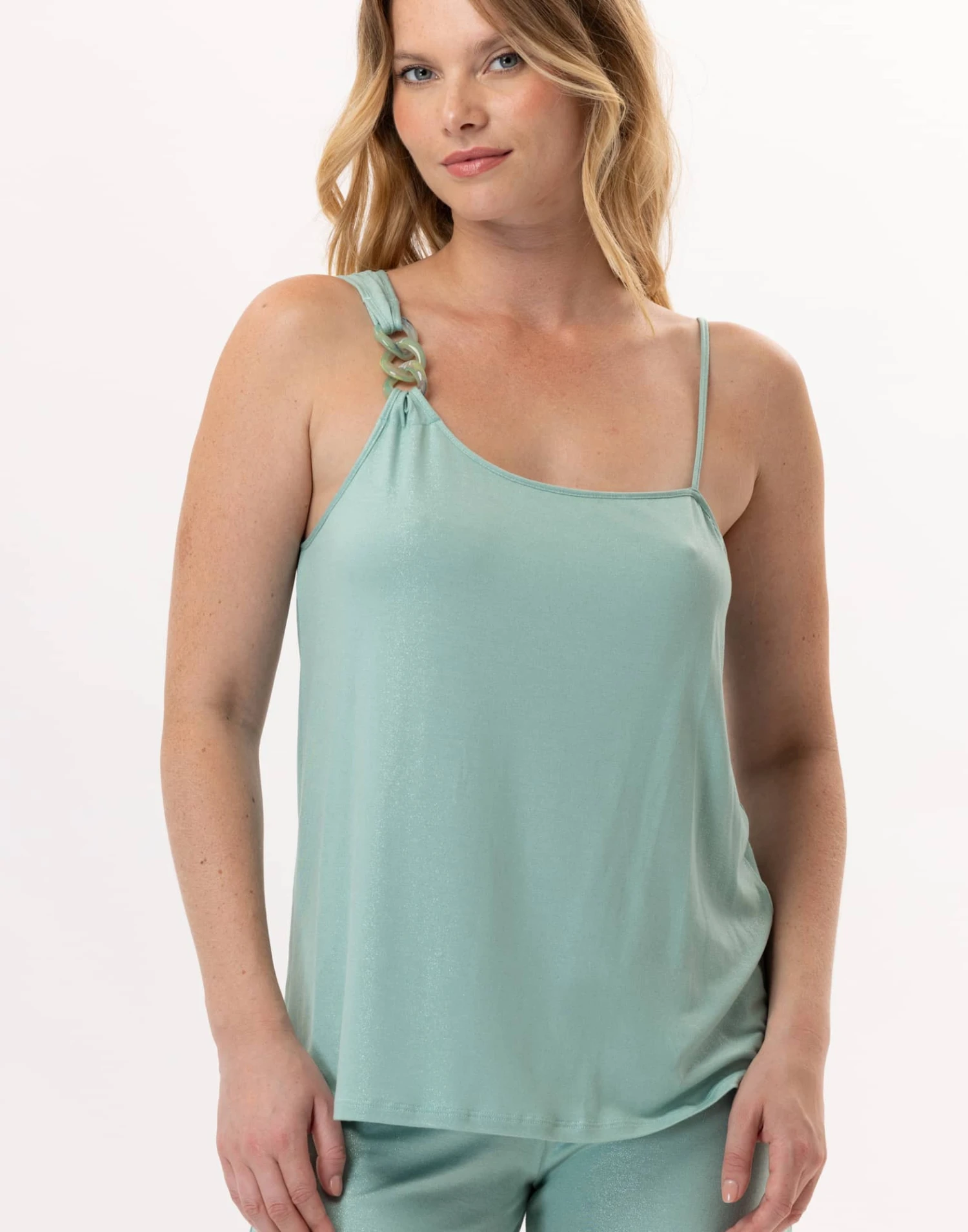 Les bretelles asymétriques sont l’atout du top RAMATUELLE 931 : l’une spaghetti, l’autre plus large et rehaussée de maillons géants en résine façon bijoux. Idéal pour vos promenades estivales, il se porte comme une tenue de prêt-à-porter, associé au short RAMATUELLE 980 pour un total look résolument estival