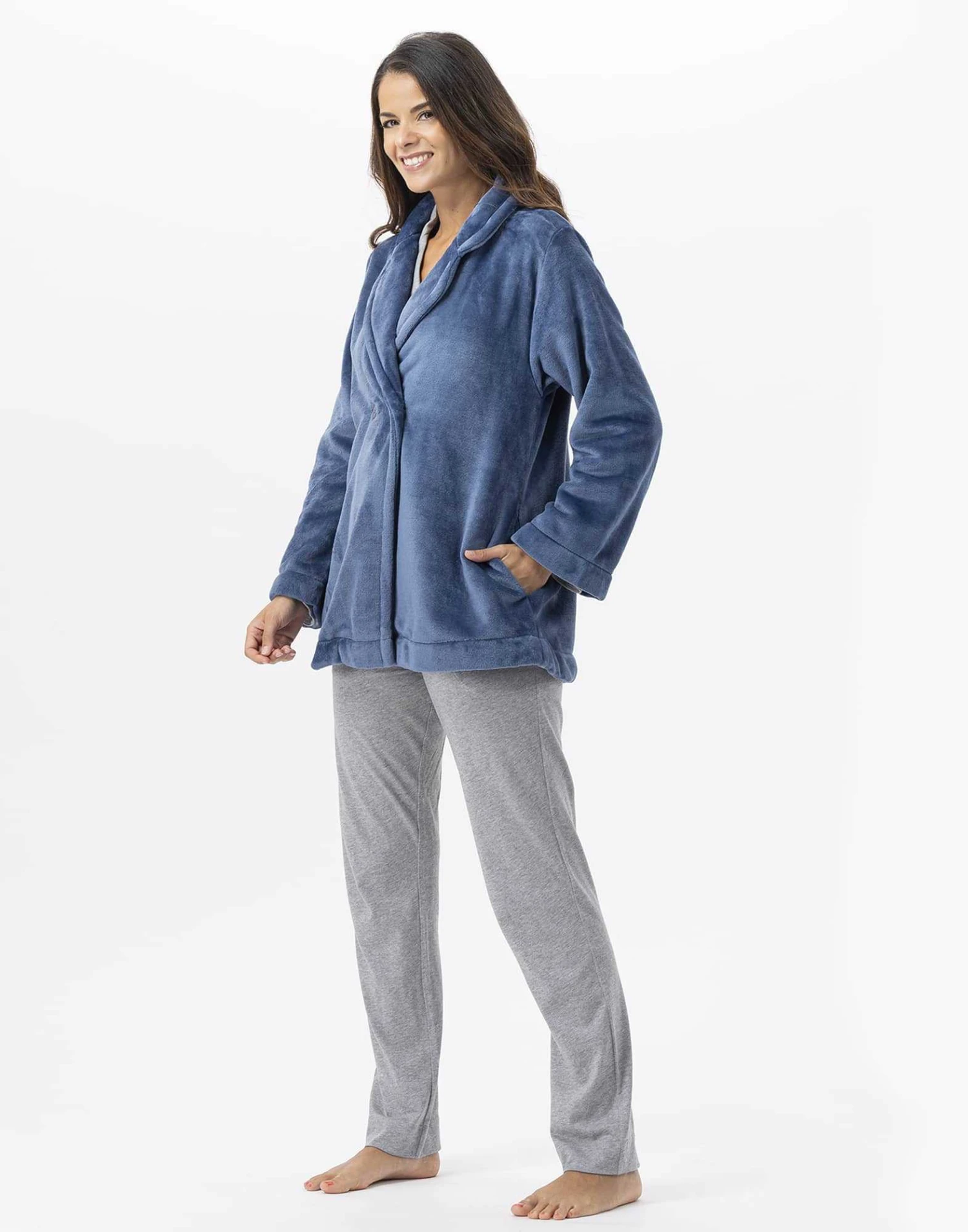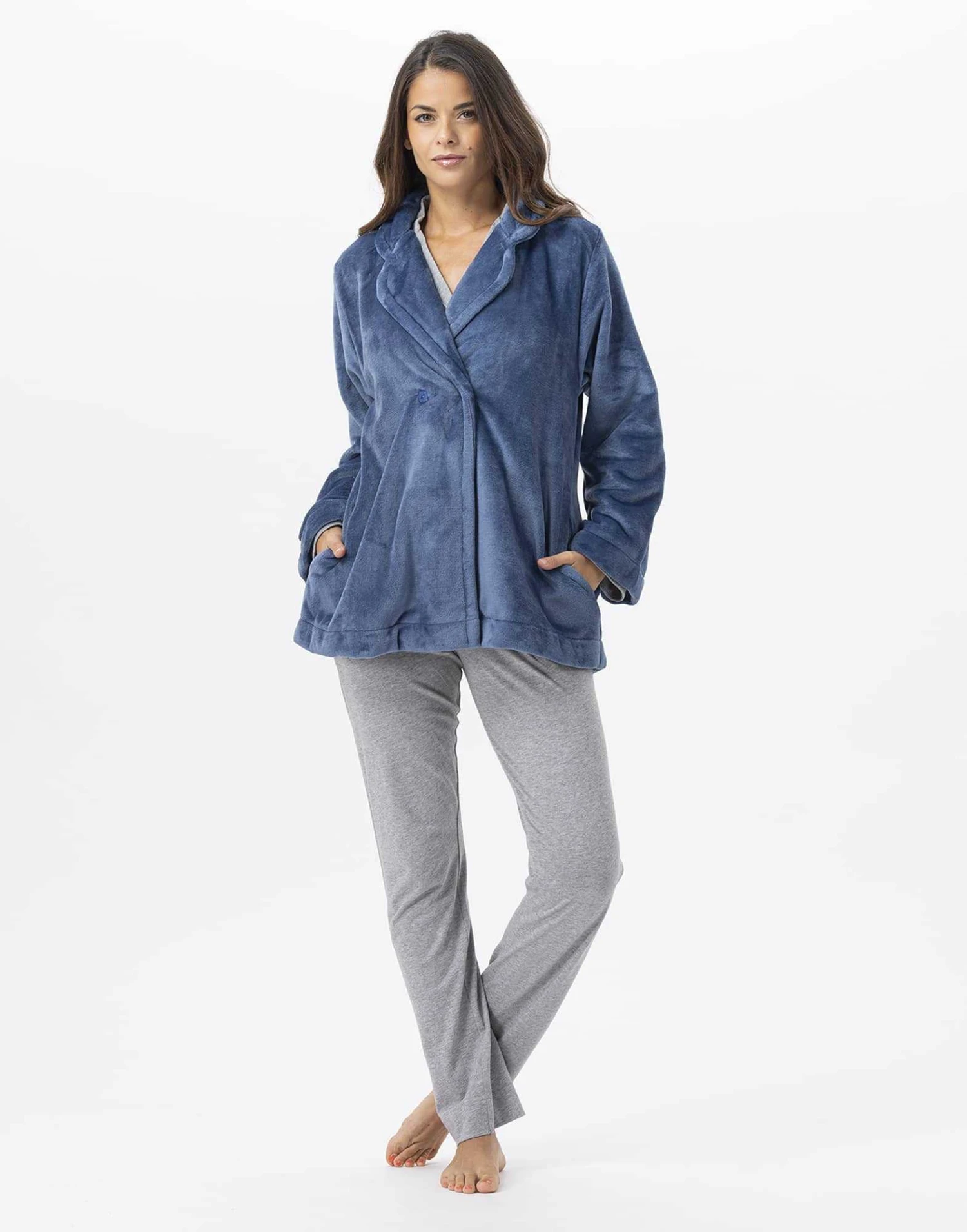 ESSENTIEL H77A est une veste homewear forme paletot, à porter dedans/dehors.